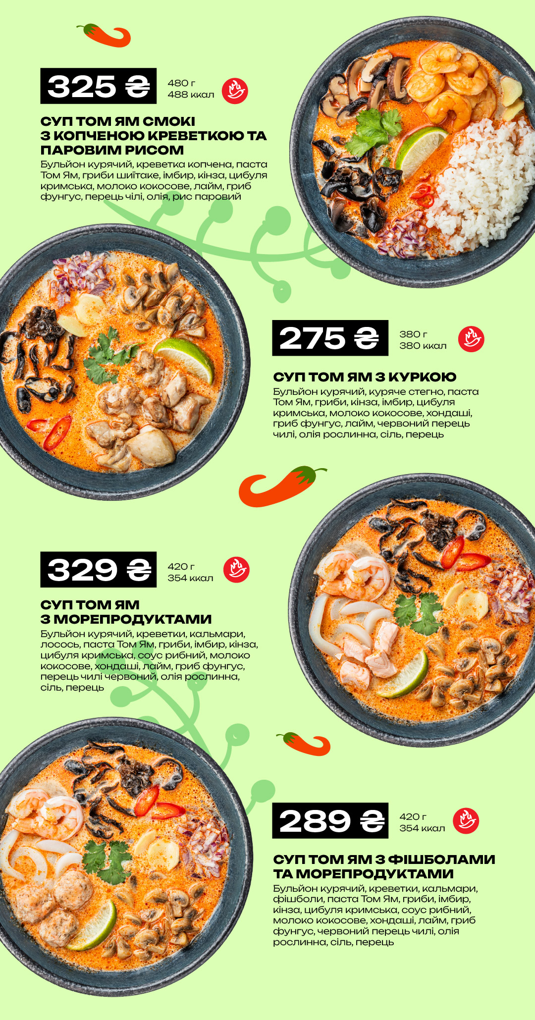 Меню в ресторанах Сушия
